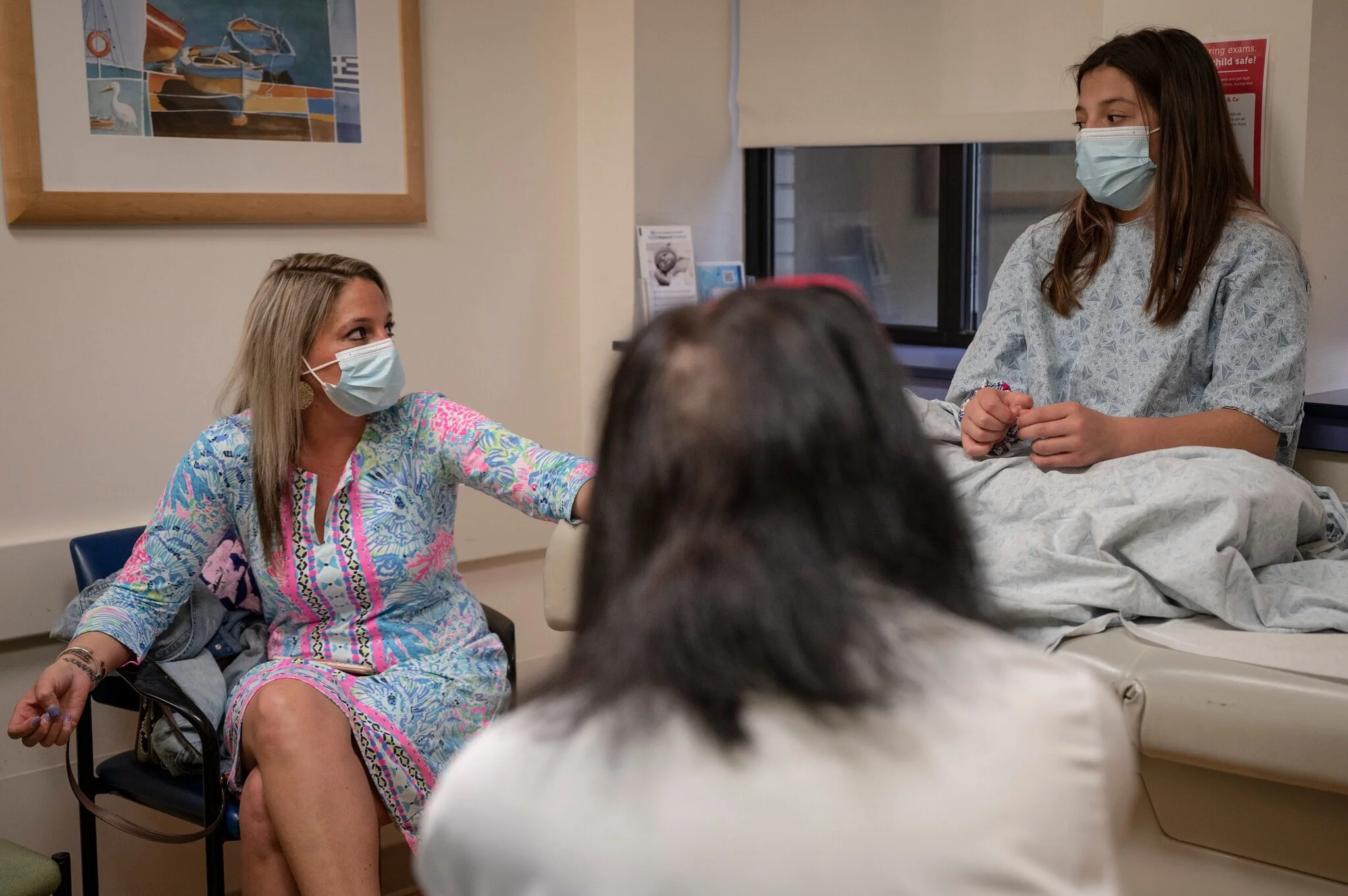 Six months after being infected with the coronavirus, Sierra Trudeau’s long Covid symptoms remained worrisome enough that she and her mother made a 50-mile trip from their home to Boston Children’s Hospital.Credit...Maddie Malhotra for The New York Times